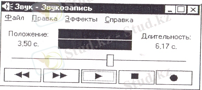 Дыбысты жазу үшін бас менюдің программалар - стандартты-мультимедиа - фонограф командасын орындаймыз. Сонда дыбысты жазу мүмкіндігін беретін терезе ашылады.