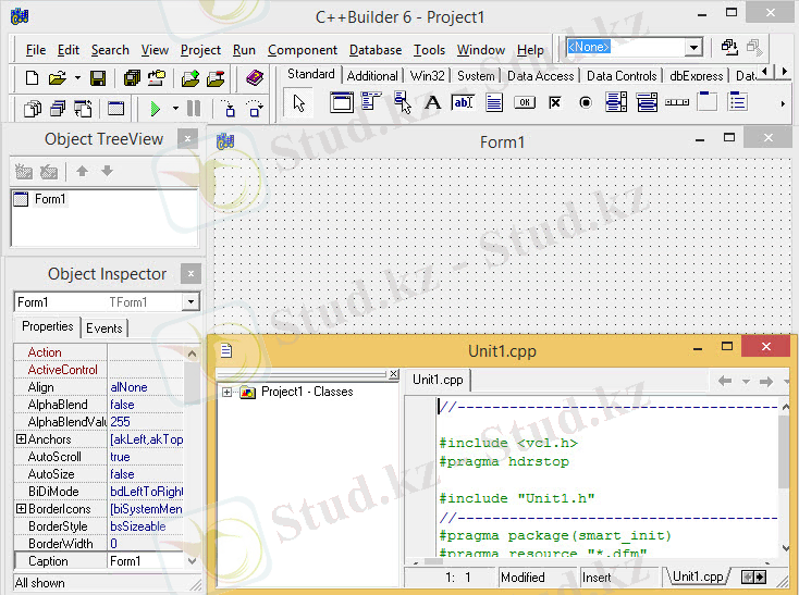 Сурет 1. 1 Borland C++ Builder ортасының жұмыс істеу ортасы