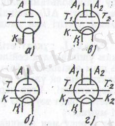 катодты екі триод, г- бөлінген катодтармен: А- анод, А- катод, К- тор.