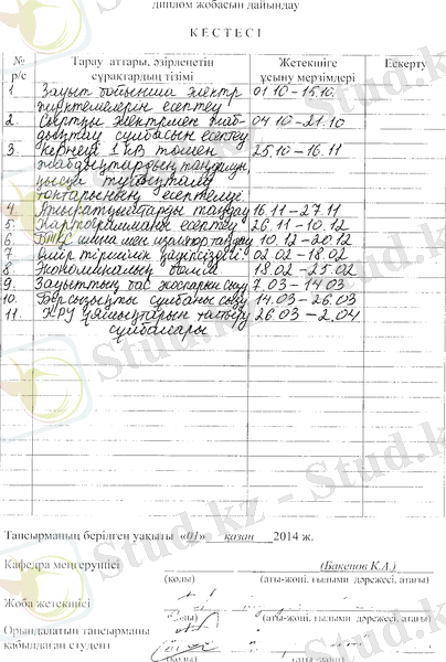 Дипломдық жобада өмір тіршілік қауіпсіздігі мен экономикалық бөлім қарастырылды.