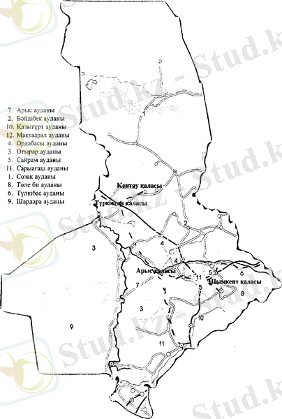 1 сурет Оңтүстік Қазақстан облысының картасы