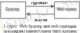 Олардың арасында байланыс каналы болуы керек. Web-браузер (Internet Explorer, Opera, т. б) web-серверге сұраныс жібереді, web-сервер оған кері қарай жауап қайтарады. Мысалы, біз почтамызға кіру үшін Internet Explorer немесе Opera браузерінен http://www. mail. ru URL-адресін жазу арқылы mail. ru-дың серверіне сұраныс жібереміз. web-сервер сұранысты қабылдап, бізге жауап жібереді, яғни біздің клиенттік машинадағы браузерімізге web-парақты жүктейді. Сөйтіп, 1-суреттегі жүйе бойынша жұмыс істейміз.