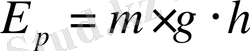 -ді өрнектейміз. Әсіресе заттың потенциалдық энергиясын нөл деп аламыз, жердің бетінде орналасқандықтан мына формулаға сәйкес келеді.