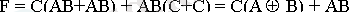 Айталық А, В және С - құрылғының логикалық бөлiмнiң кiрiсiндегi сигналдар (Ажыратып қосқыштың тұйықталған жанаспасына логикалық 0 деңгейi сәйкес, ал тұйықталмағанға - логикалық 1 деңгейi), F - құрылғының логикалық бөлiмнiң шығысындағы сигнал (F=0, лампа жанып тұрғанда) . Осы айнымалыларды бiрiктiретiн ақиқат кестесiн толтырамыз (сур. 4. 2, а) . Шығыс функциясын ЖДҚФ-да жазып және оны қарпайым түрлендiру жасау арқылы минимизация жасауға тырысамыз:
