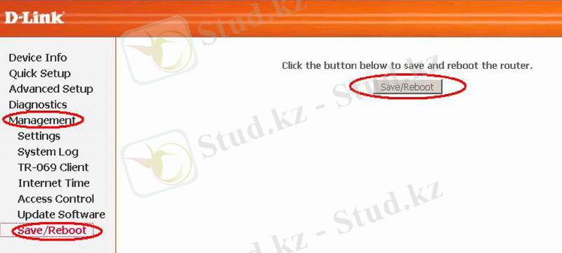- «SAVE/APPLY»-ді басамыз, құрылғыны қайта жүктейміз («Management» - «Save/Reboot») .