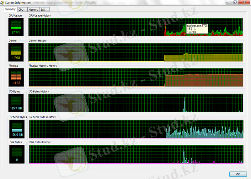 Басқа басқа, көмекте бос емес олардан әрбір жадтар сипаттамаларымен және көлемімен барлығын процесстеріне тізімге мәтіндік файлға жүк түсіруге Process Explorer болады, кез келген қосымшаны іске қосу, өшір, қайта жүктеу немесе компьютер тосқауыл қойу керек, қолданхатын кітапхананы табу және хэндлы, нақтылы процесстердің түспен жарықтандыруды қосу керек және осылай бұдан әрі. Жұмыс істейтін процесстер тексеру барлық бұл көмектесіп жатыр және жүйелік қорлардың қолдануыға туралы жеткілікті мәліметті алу керек.
