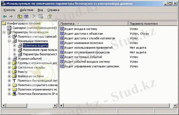 Суретте аудиттың стандартты саясаткерлері ұйымдық бөлімше үшін "доменнің контроллерлері" бейнеленген(3-сурет) .