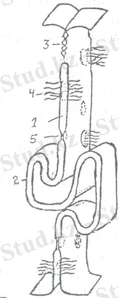 4 - десмосома; 5 - саңылау тәрізді байланыс.