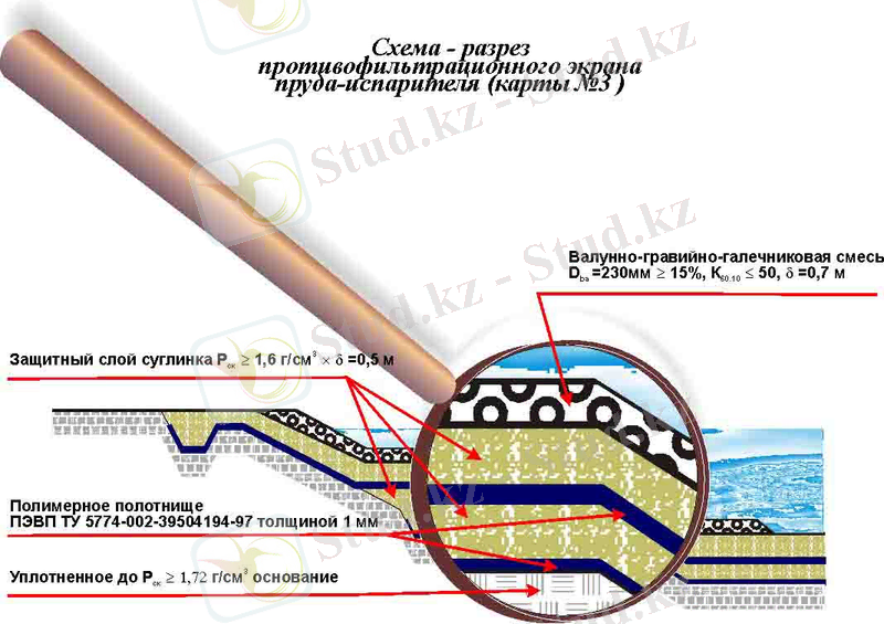 Полимерлік гидрогелді кері сүзгіштік экраны ретінде пайдалануға болатын мүмкіншілігін бағалай отырып және сұйық радиактивтік қалдықтардың жер асты қабатындағы булақ суларына өтіп кетпеуін болдырмау үшін, ИВТ алдын - ала ТЗ және ТЭО варианттарын зерттеп жасады, тәжірибелік жағдайда модельдік эксперименттер жүргізілді. Қазіргі уақытта АО «УМЗ» ның сұйық қалдықтарды сақтайтын орының ( укрытие обьектіні ) жабу төмендегідей жүзеге асырылады. (Сурет 11) :