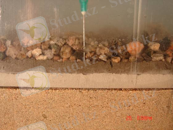 Осы жағдайда үлгілеу кезінде құм қабатын гидрогельсіз ылғалдандару, полиэтилен қабатын өте тез уақыт аралығында өтеді (Сурет 13) .