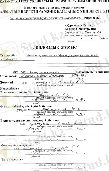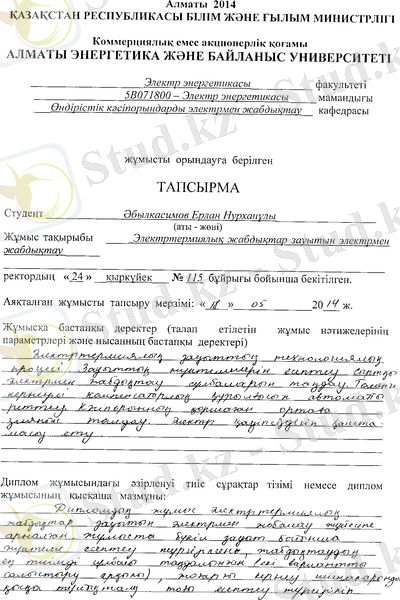 «Электротермиялық жабдықтар зауытын электрмен жабдықтау»