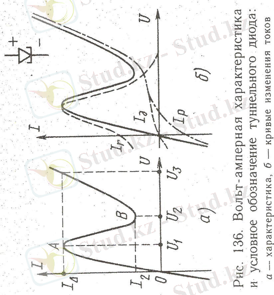 Бірақ оның өсуі р облыстың төбесі өткізгіштің зонасының түбімен бір деңгейде болғанда тоқтайды, өйткені электрондардың n облыстан p облысқа туннельденуі.