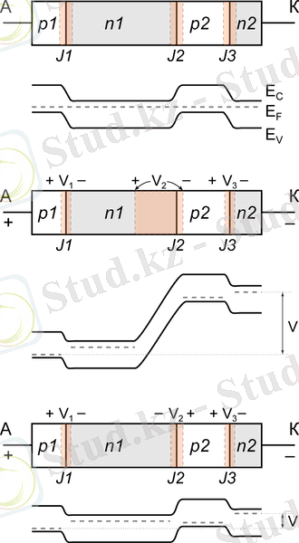 3а-суретте тунельдік диодтардың тиристорлардың құрылысындағы алатын орны көрсетілген.