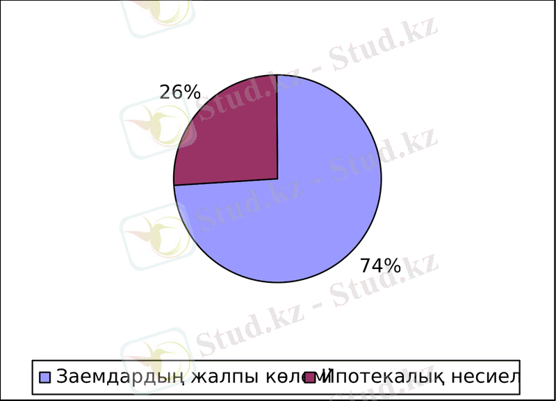 Келесі кестеде заемалардың жалпы көлеміндегі және ЖІӨ-дегі жылжымайтын мүлікпен кепілдендірілген ипотекалық несиелеудің үлесі көруге болады. Мұнда ипотекалық несиелеудің үлес салмағы жыл өтіп орта түскендігі байқалады. Жылжымайтын мүлікті кепілге қоятын ипотекалық несиелер 01. 01. 06 жылы алдыңғы жыл көрсеткішімен салыстырғанда 1, 8 есеге өссе, жеке тұлғаларға тұрғын үй сатып алуына берілген заемдар 01. 01. 06 жылы алдыңғы жылмен салыстырғанда 2 есеге өскен.