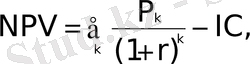 мұнда P k - инвестициялық жобаның жылында алып келетін ақшалай кірістері; IC - инвестициялардық бастапқы сомасы; r - дисконттау коэффициенті.