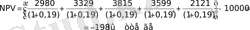 Есептің шарты бойынша инвестицияланған капиталдың бағасы 0, 19%, сол себепті дисконттау коэффициентін осы мәнге теңеп, таза келтірілген табысты табамыз: