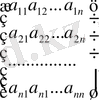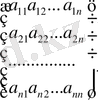 - анықтауыштың элементтері болады. Бірінші индекс i жатық жолдың, екінші индекс j тік жолдың нөмірі.