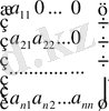 Анықтама. Реті n-ге тең анықтауыш деп (1) матрицаның жатық жолдары мен тік жолдарының әрқайсысынан бір-бірден алынған n элементтің көбейтіндісінен тұратын n! қосылғыштың алгебралық қосындысын айтады. n -ші ретті анықтауышты былай белгілейді: