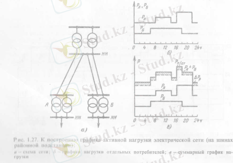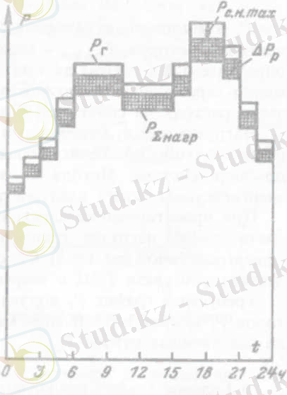 Энергия жүйесі генераторлары жүктемесінің графигін электрэнергияның өзіндік мұқтаждарға қосымша шығынын ескеріп, шиналардан жіберілетін қуат графигінен алады (1. 28 сур. ) . Электрстанциялар жүктемелерінің едәуір тербелістерінде өзіндік мұқтаждар тұтынуының айнымалы сипатын ескеру керек