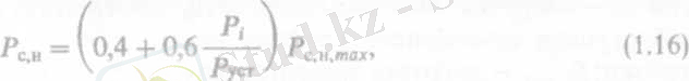 мұнда Р i - станция шиналарынан берілетін қуат; Р уст - генераторлардың орнатылған қуаты; Р с. н. мах - өзіндік мұқтаждарға кететін максималды шығын, 5. 2 кест. деректерін ескеріп анықталады; 0, 4 және 0, 6 коэффициенттері өзіндік мұқтаж шығындарының тұрақты және айнымалы бөлігінің тиісті үлесін жуықтап сипаттайды Р с. н. мах .