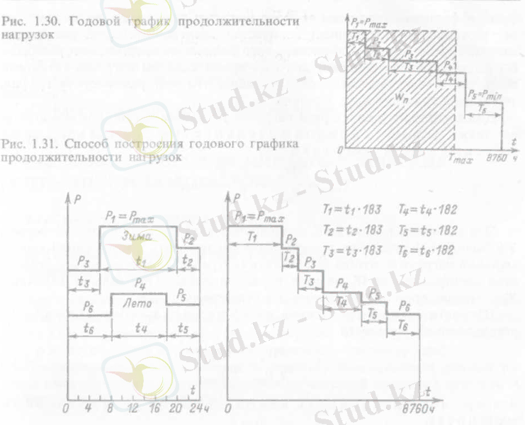 Жүктеме ұзақтығының жылдық графигін белгілі тәуліктік графиктердің негізінде тұрғызады. 1. 31 сур. графикті тұрғызудың тәсілі жүктеменің екі тәуліктік графиктерінің - қыстық (183 күн) және жаздық (182 күн) негізінде көрсетілген.