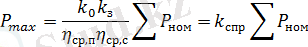 Эксплуатация тәжірибесінде әдетте тұтынушылардың айғақты жүктемесі қосынды орнатылған қуаттан аз. Бұл жағдай біруақыттық k o және жүктелу k з коэффициенттерімен ескеріледі. Онда тұтынушылардың максималды жүктемесі үшін өрнектің түрі болады: