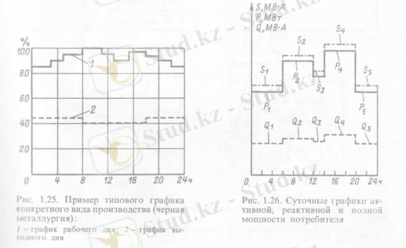 демалыс күнінің графигі және т. б. Негізгісі әдетте жұмыс күнінің қысқы тәуліктік графигі. Оның максималды жүктемесі Р тах 100% қабылданады, және барлық басқа графиктердің ординаттары осы мәннің проценттерімен беріледі (1. 25 сур. ) .