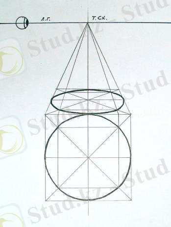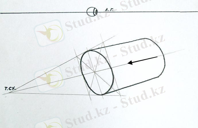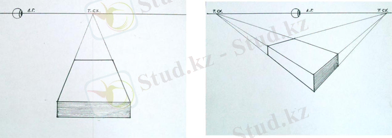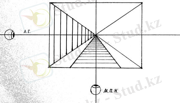 Сурет. 11. Фронтальды перспектива, горизонт сызығында бір қиылсу нүктесі