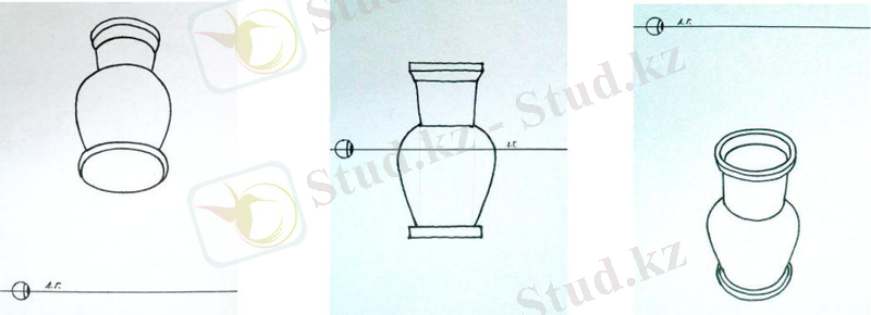 Сурет 7. Төмен (а), Орташа (б), Жоғары (в) горизонт (г с. - горизонта сызығы) .