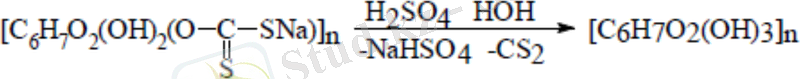 Талшықтағы целлюлоза ксантогенатының гидратцеллюлозаға айналу үрдісі келесі сызба бойынша жүзеге асады: