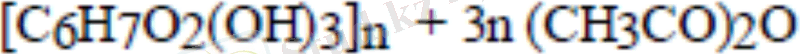 Целлюлозаны ацетилирлеу реакциясы қайтымсыз және целлюлоза үшацетатының туындауына әкеліп соқтырады: