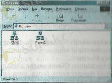Сендер бүрыннан Жұмыс орнында (Рабочий стол) Сетевое окружение (желі ортасы) деген ете маңызды белгіше бар екенін білесіндер. Егер маус нүсқағышын сол белгішеге апарып екі рет шертсеңдер, онда сендердің дисплей сыныптарыңны11 желіде жұмыс істейтін компьютерлерін түгел көрсететін қан шық ашылады.