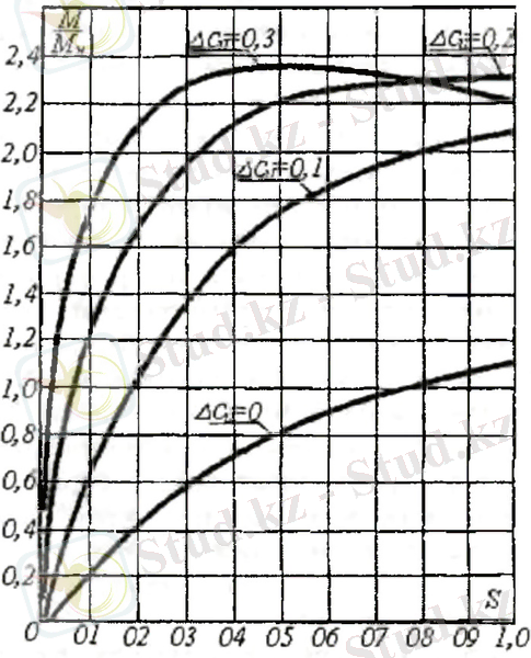 2-сурет. Массасы ауыр ойықтармен түптері мысталған ферромагнитті роторы бар асинхронды қозғалтқыштың механикалық сипаттамасы.