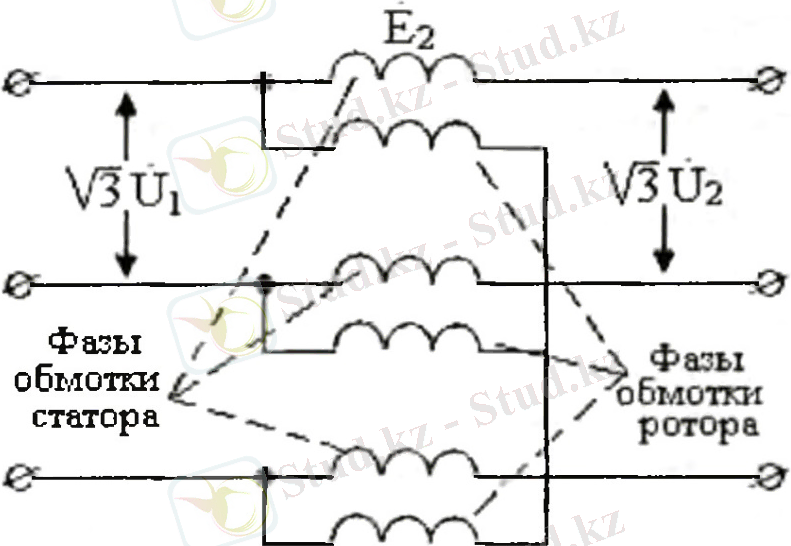 4-сурет. Кернеулі индуктивті реттеуіш ретінде қолданылатын фазалы роторы бар аснихронды қозғалтқыш орамасын қосудың электр сұлбасы.