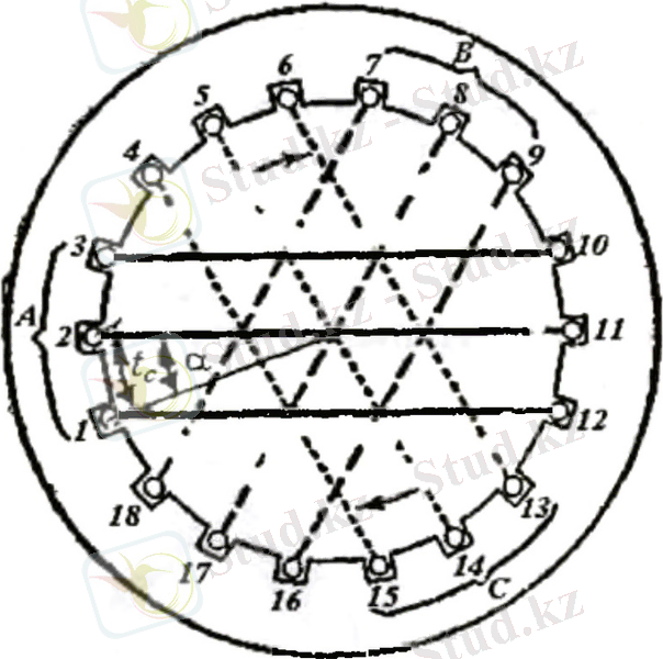 9-сурет. Асинхронды қозғалтқыш статоры ойықтарында орамдардың бөлінуі