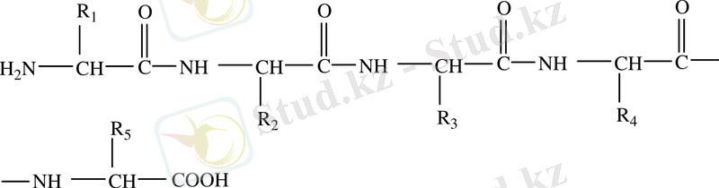(CuSO 4 + NaOH + белок) күлгін көк түсті ерітінді. Пептидтік байланыс арқылы бірнеше амин қышқылдары бірімен-бірі байланысып трипептид, тетра-, пента-, . . . полипептид түзеді. Белоктың полипептид тізбегі жалпы түрде:
