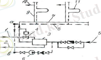 8- жылыту жүйесі; 9-айналымды жалғастырғыш; 10, 11-вентилдер;