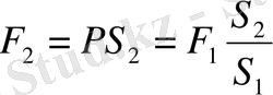 Бұл өрнектен екінші поршеньнің S 2 ауданы қаншалықты бірінші поршеньнің S 1 ауданынан артық болса, соншалықты екінші поршеньге әрекет ететін қысым күші F 1 күштен артық екенін байқаймыз.