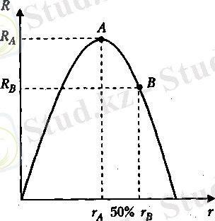 А нүктесінде табыс салығының ставкасы r=50% болғанда салық түсімдері максималды болады.