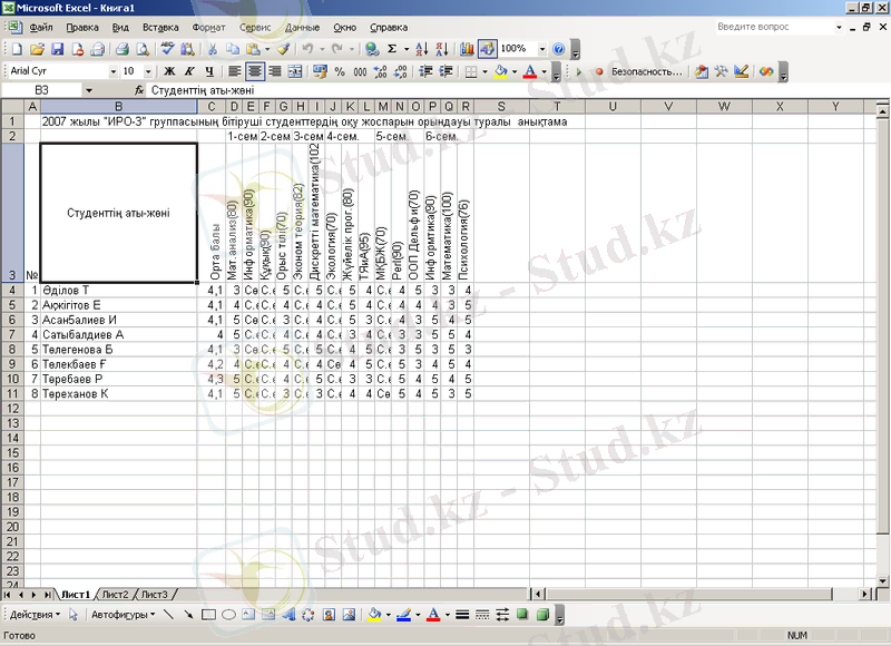 Толтырып болған соң, ведомостті Excel ортасында көру мүмкіндігін пайдаланамыз. Ол үшін F5 батырмасын басамыз не болмаса Сервис🡪Группаның ведомостін қарау тізбегін орындаймыз. Бұл процесс 7-суретте бейнеленген.