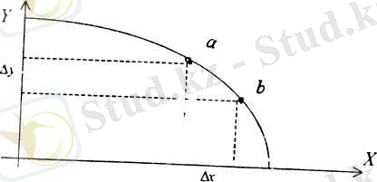 а және b жиынтықтары өндірістік мүмкіндіктер шекарасына жатады. а жиынтығынан b жиынтығына көшу X тауарының өндірісін өсіруін және Y тауарының өндірісін азаюын көрсетеді.