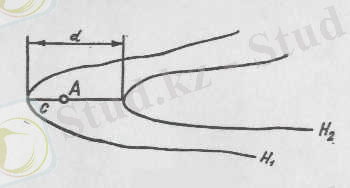 Егер де биіктік белгілері Н 1 және Н 2 көршілес горизонтальдар арасында орналасқан А нүктесіндегі (1-сурет) бұрғылау скважина аузының биіктік белгісін Н А анықтау керек болса, онда А нүктесі арқылы горизонтальдарға дейінгі ара қашықтықтарға нормаль сызығын жүргізіп, с және d кесінділерін өлшейміз. Сонда бұрғылау скважннасының ізделіп отырған биіктік белгісі мынадай болады: Н А = Н 1 + с \d (Н 2 - Н 1 ) .