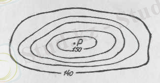Нүкте тұйық горизонтальдың ішінде орналасқан. Мысалы, Р нүктесі (2-сурет) тұйық горизонтальдың ішінде орналасқан, әрі төбенің ұшар басы болып табылады. Әрине, осы нүктенің Н р биіктігі нүктенің маңындағы горизонтальдың биіктік белгісінен, жер бедері кимасының биіктігінін шамасынан кем екені белгілі. Сондықтан Р нүктесінін Н р биіктік белгісі шамамен көршілес горизонтальдың биіктік белгісіне жер бедері қимасы биіктігінің жартысын косқан кезде шығатын санға тең деп алуға болады, яғни Н р =151, 25 м. Егер нүкте қазан шұңқырдың түбінде орналасса, онда оның биіктік белгісі көршілес горизонтальдың биіктігінен жер бедері қимасы биіктігінің жарты шамасын алған кезде шығатын санға тең деуге болады