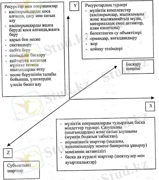 Кәсіпорын ресурстарымен операциялар жасау және оның нарықтық құнын бағалау кезінде анықтаушы жағдай болып, аталған «кеңістіктегі» эрбір ресурс бойынша, тиімді басқару шешімін қабылдау операцияларына қатысатын сатушы мен сатып алушы және бағалаушының құқықтық қатынастары негізінде анықталады.