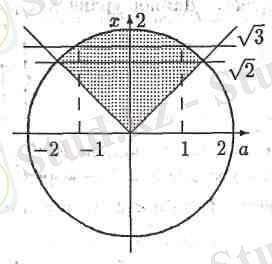 Бірінші теңсіздіктер жүйесінің шешімі центрі координатаның бас нүктесінде және радиусы 2-тең, ал екінші