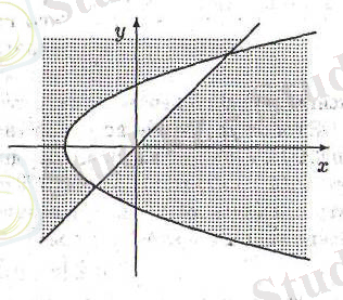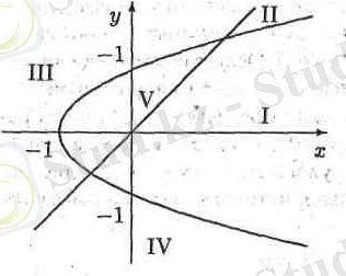Берілген теңдеулерді обцисса осіне симметриялы біріншісінен - түзу, ал екіншісі - парабола шығады. (4-суретке қара) . Параболамен түзу бүкіл жазықтықты 5-бөлікке бөледі. Және