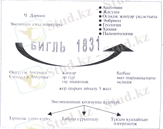 Эволюцияның қозғаушы күштерін оқытуда оқушылар тірек-сызбалар мен сөйлей отырып, Дарвиннің эволюциялық теориясының мәнін ашады.