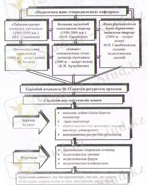 Осындай ғылыми мектеп Тараз мемлекеттік педагогикалык институтында ашылды, академик Н. С. Сарыбеков пен профессор М. Н. Сарыбековтың ғылыми-педагогикалық мектептері жаңа тұрпатты мұғалімнің кэсіби жетілуі бағытында жұмыс жасауда (26-сурет) .