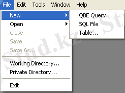 Database Desktop программасын жүктейік. Содан кейін File / New командасын таңдау арқылы 1- суретте берілгендей қосымша менюді көре аламыз: