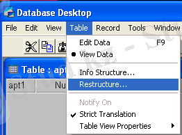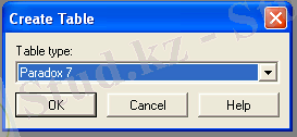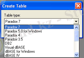 Бұл командалар ішінен Table командасын таңдап аламыз. Төмендегі суретте көрсетілгендей сұхбат терезесі ашылады. Сырғымалы тізімнен мәліметтер қорын басқару жүйесін таңдап алуға болады. Бірақ қалыпты жағдайда Paradox 7 - ні таңдап алып, ОК түймесін басамыз.